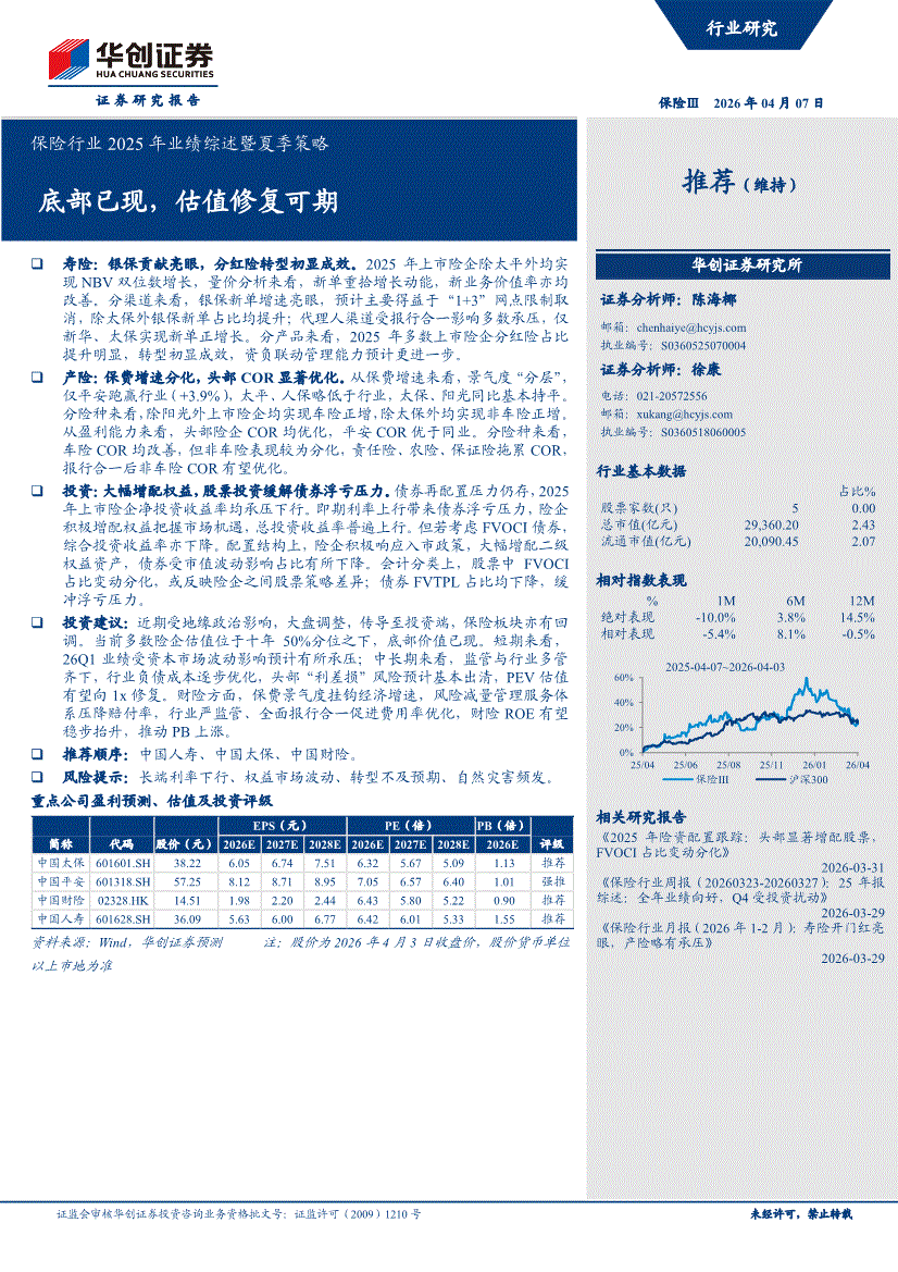保险行业:华创证券-保险行业2025年业绩综述暨夏季策略:底部已现,估值修复可期-260407