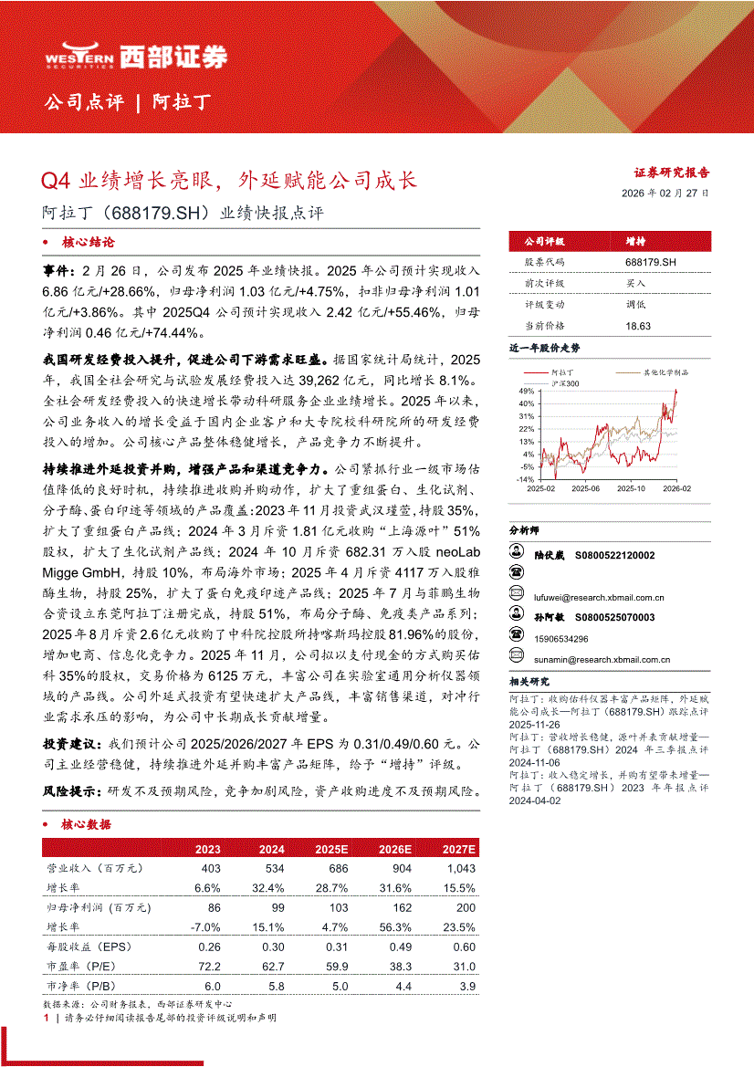 阿拉丁:西部证券-阿拉丁-688179-业绩快报点评:Q4业绩增长亮眼,外延赋能公司成长-260227