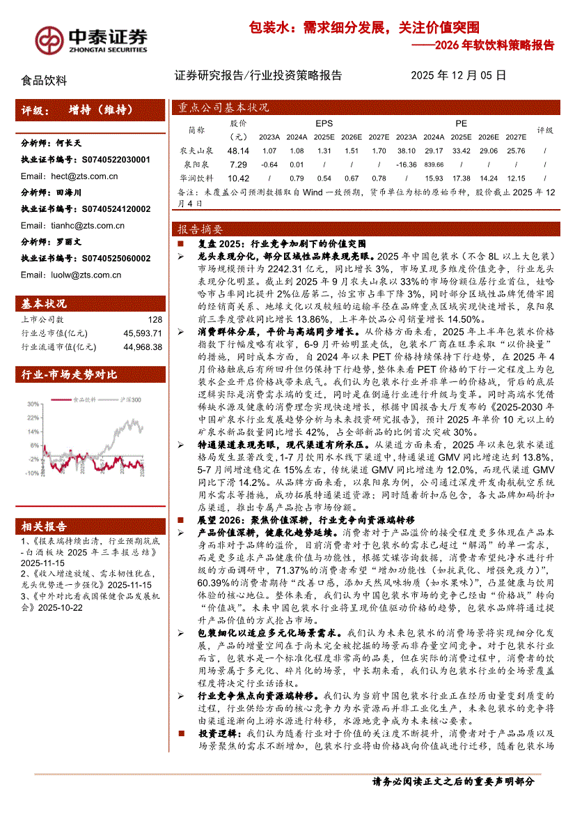 食品饮料行业:中泰证券-2026年软饮料行业策略报告:包装水,需求细分发展,关注价值突围-251205