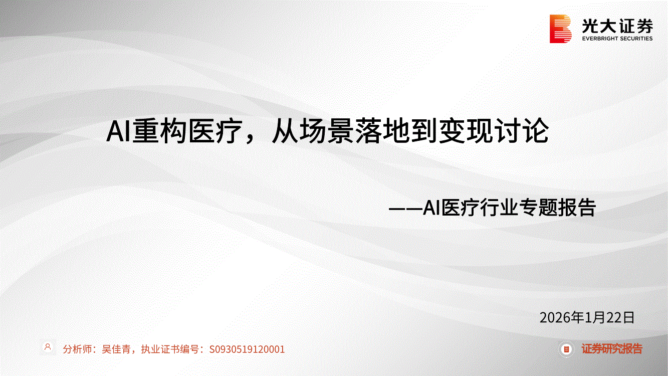 AI医疗行业:光大证券-AI医疗行业专题报告:AI重构医疗,从场景落地到变现讨论-260122