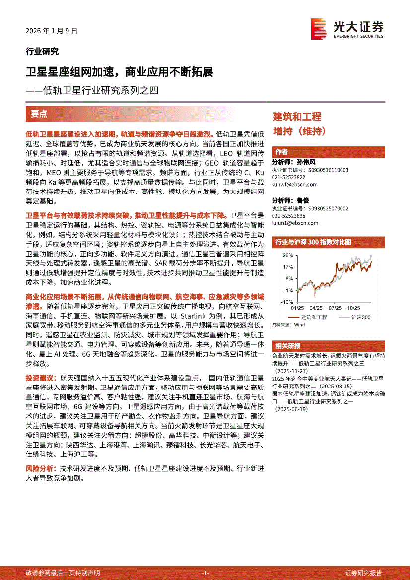 低轨卫星行业:光大证券-低轨卫星行业研究系列之四:卫星星座组网加速,商业应用不断拓展-260109