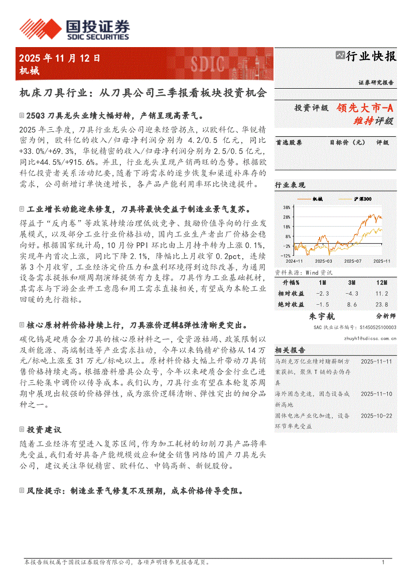 机床刀具行业:国投证券-机床刀具行业:从刀具公司三季报看板块投资机会-251112