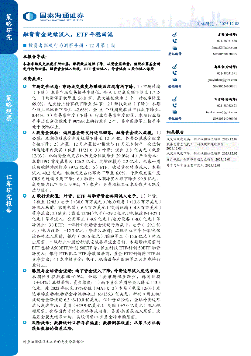 国泰海通证券-投资者微观行为洞察手册·12月第1期:融资资金延续流入,ETF平稳回流-251208