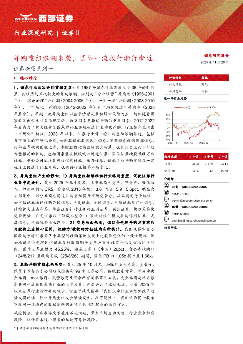 证券行业:西部证券-证券行业瞭望系列一:并购重组浪潮来袭,国际一流投行渐行渐近-251129