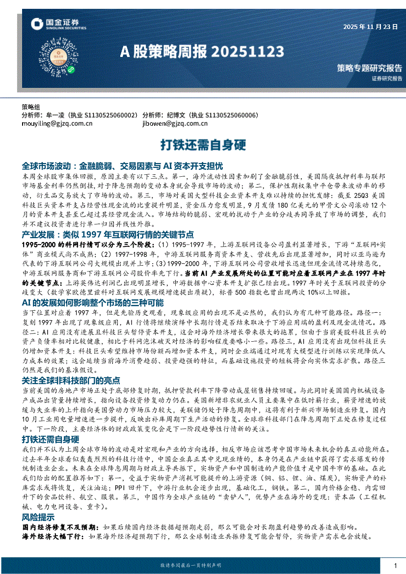 国金证券-A股策略周报:打铁还需自身硬-251123
