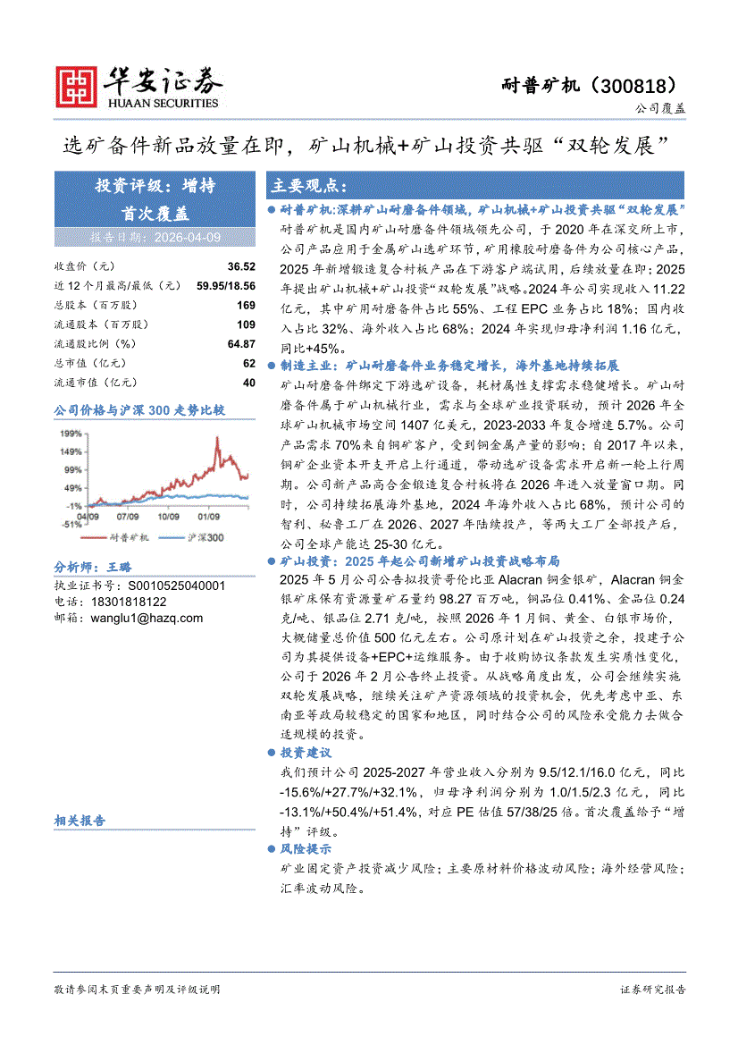 华安证券-耐普矿机-300818-选矿备件新品放量在即,矿山机械+矿山投资共驱“双轮发展”-260409