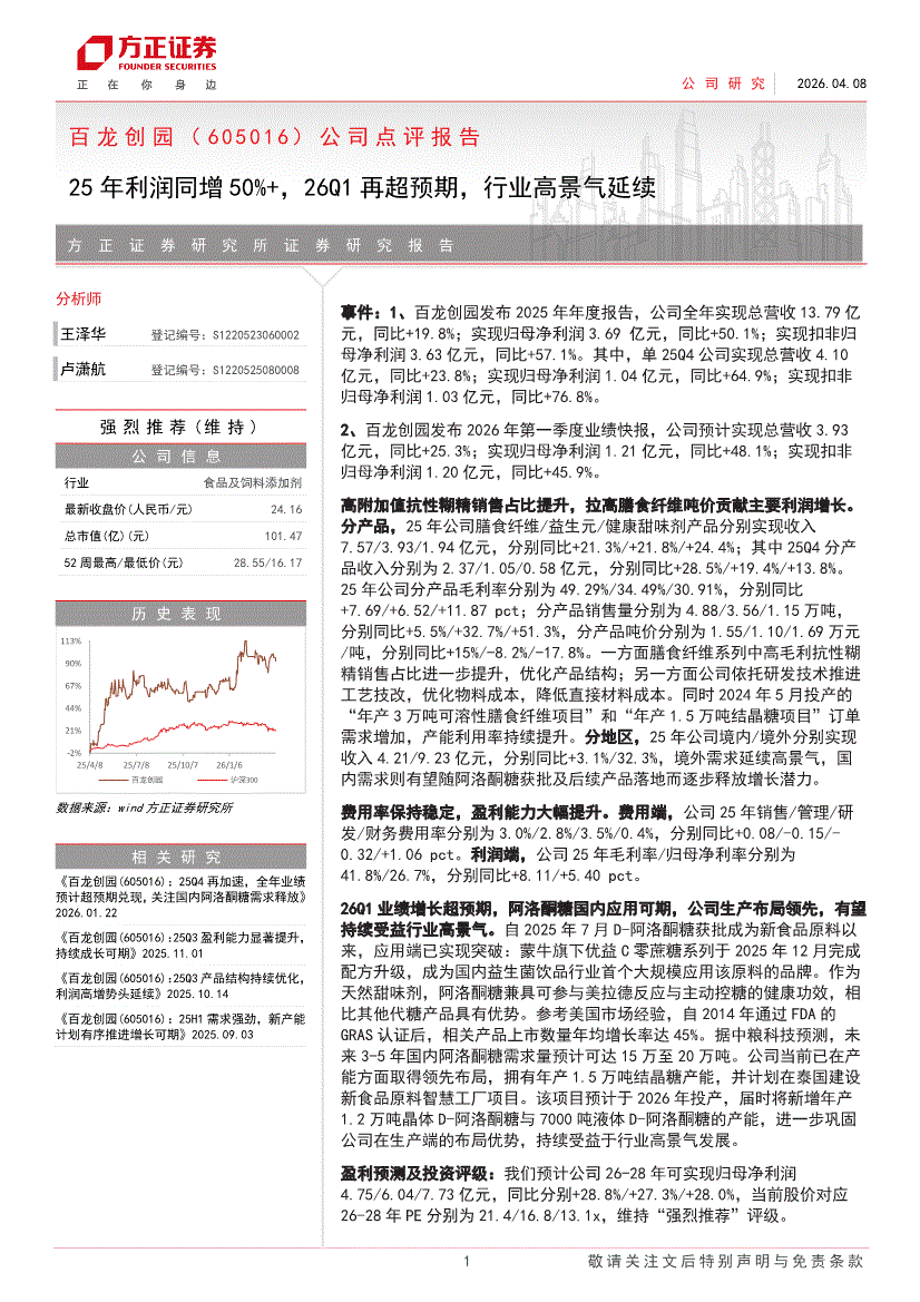 百龙创园:方正证券-百龙创园-605016-公司点评报告:25年利润同增50%+,26Q1再超预期,行业高景气延续-260408
