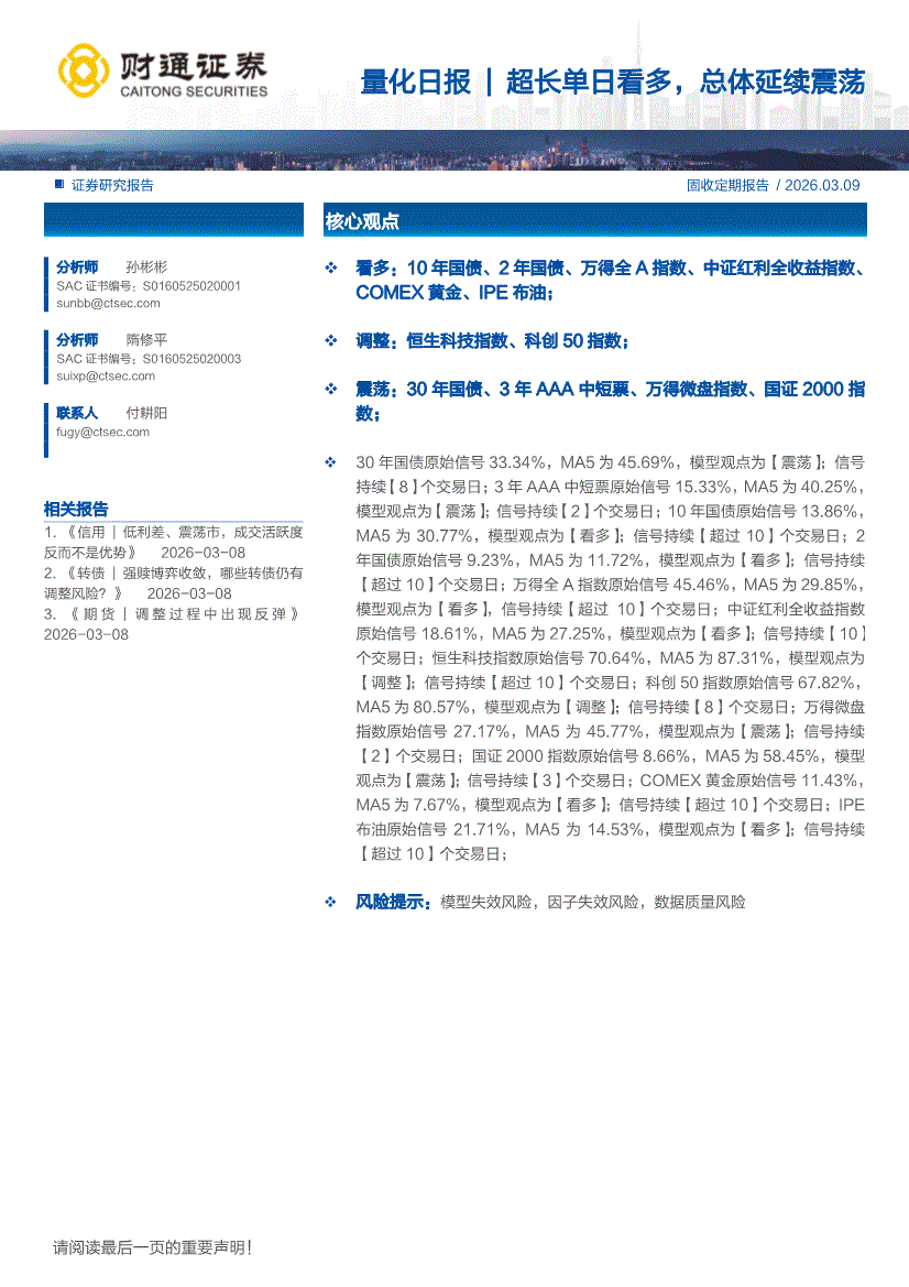 财通证券-量化日报|超长延续震荡,长端保持看多-260306
