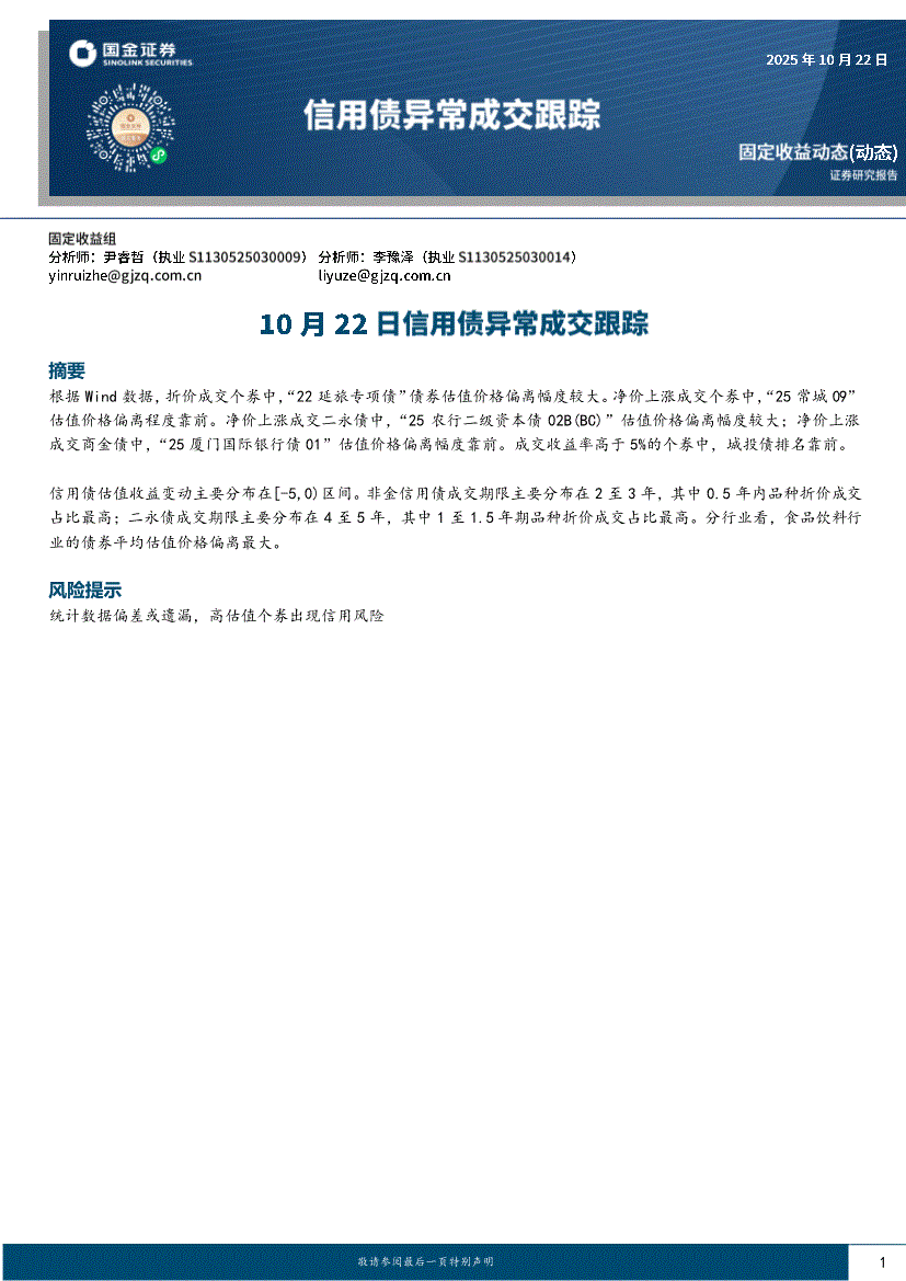 国金证券-信用债异常成交跟踪:10月22日信用债异常成交跟踪-251022
