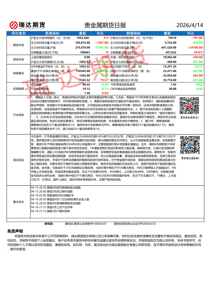 瑞达期货-贵金属期货日报-260414