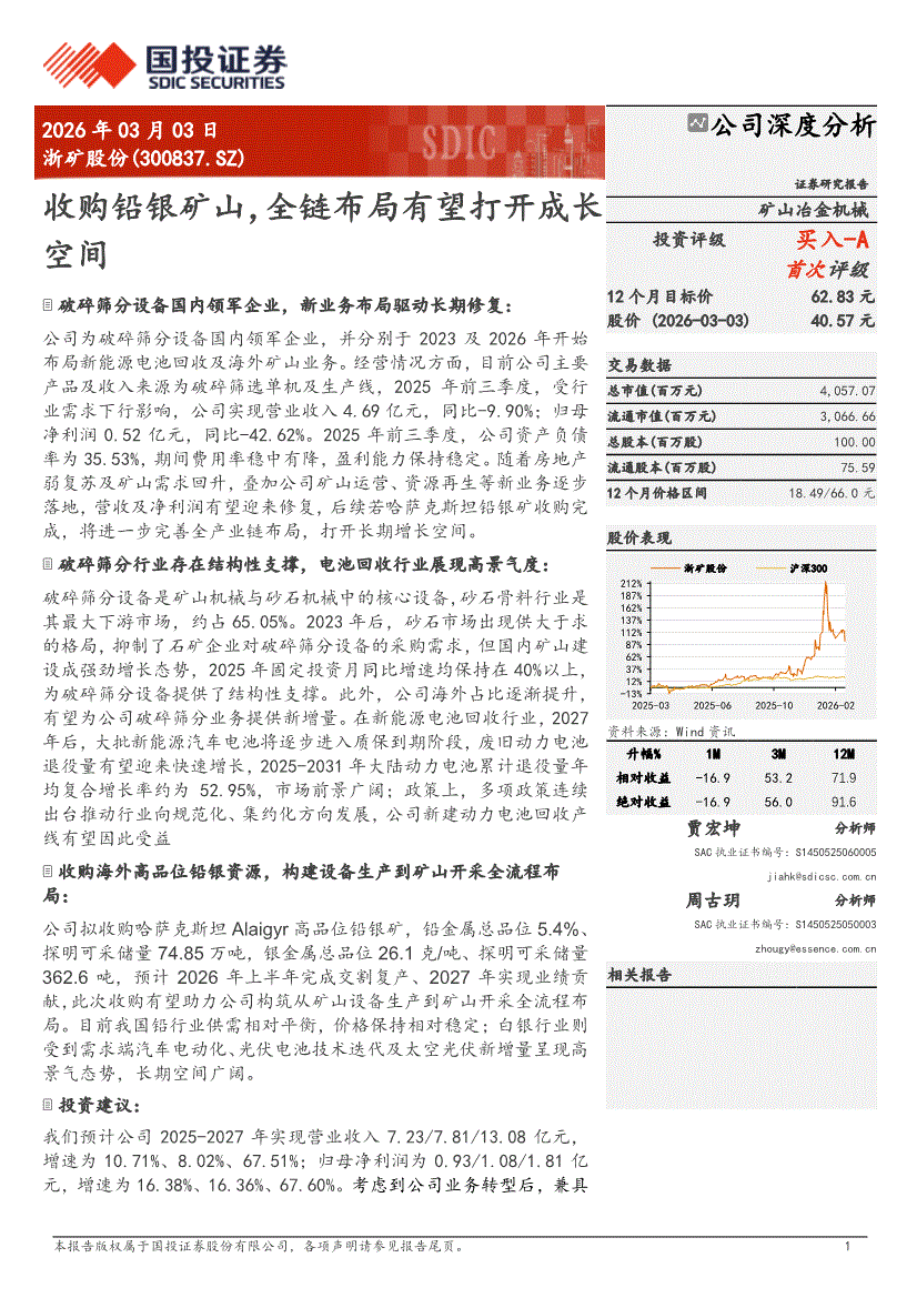 浙矿股份:国投证券-浙矿股份-300837-收购铅银矿山,全链布局有望打开成长空间-260303