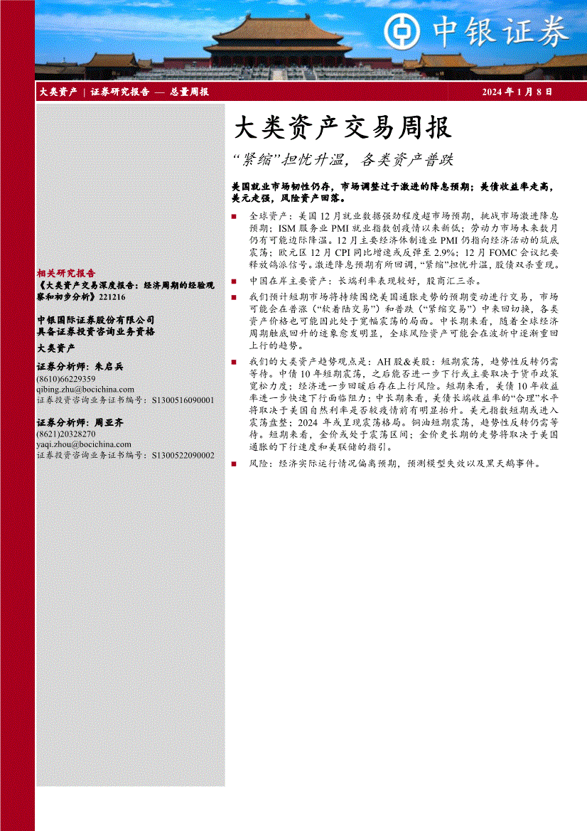 中银国际-大类资产交易周报:“紧缩”担忧升温,各类资产普跌-240108