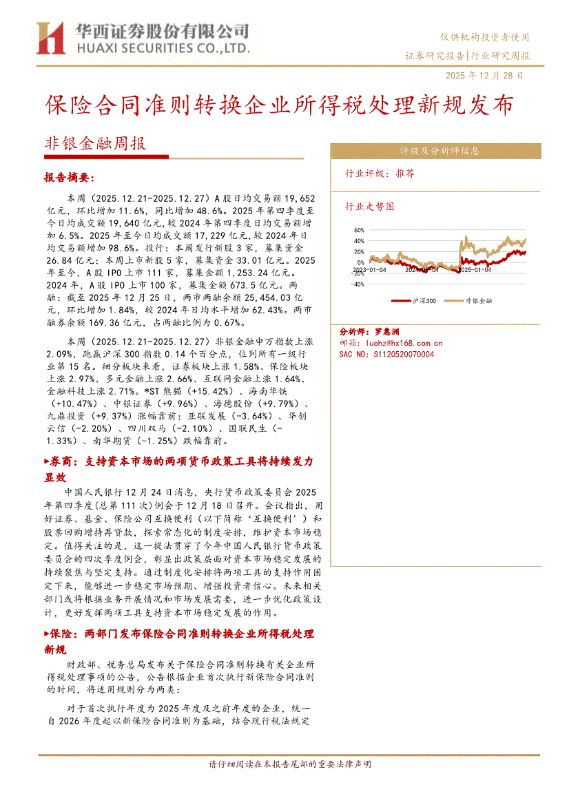 非银金融行业:华西证券-非银金融行业周报:保险合同准则转换企业所得税处理新规发布-251228