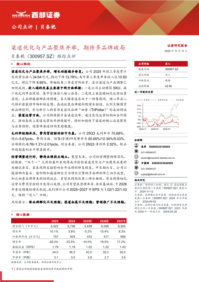 贝泰妮:西部证券-贝泰妮-300957-跟踪点评:渠道优化与产品聚焦并举,期待多品牌破局-251111