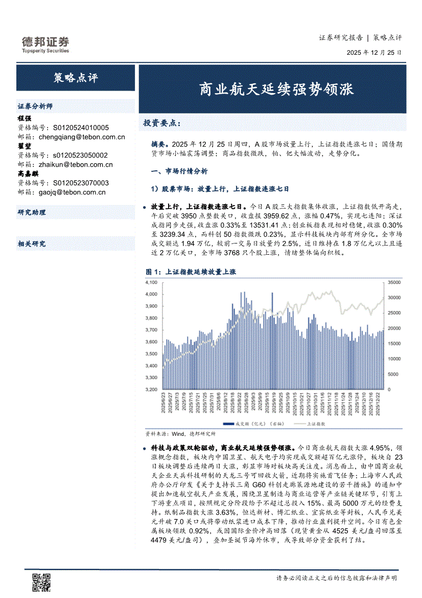德邦证券-策略点评:商业航天延续强势领涨-251225