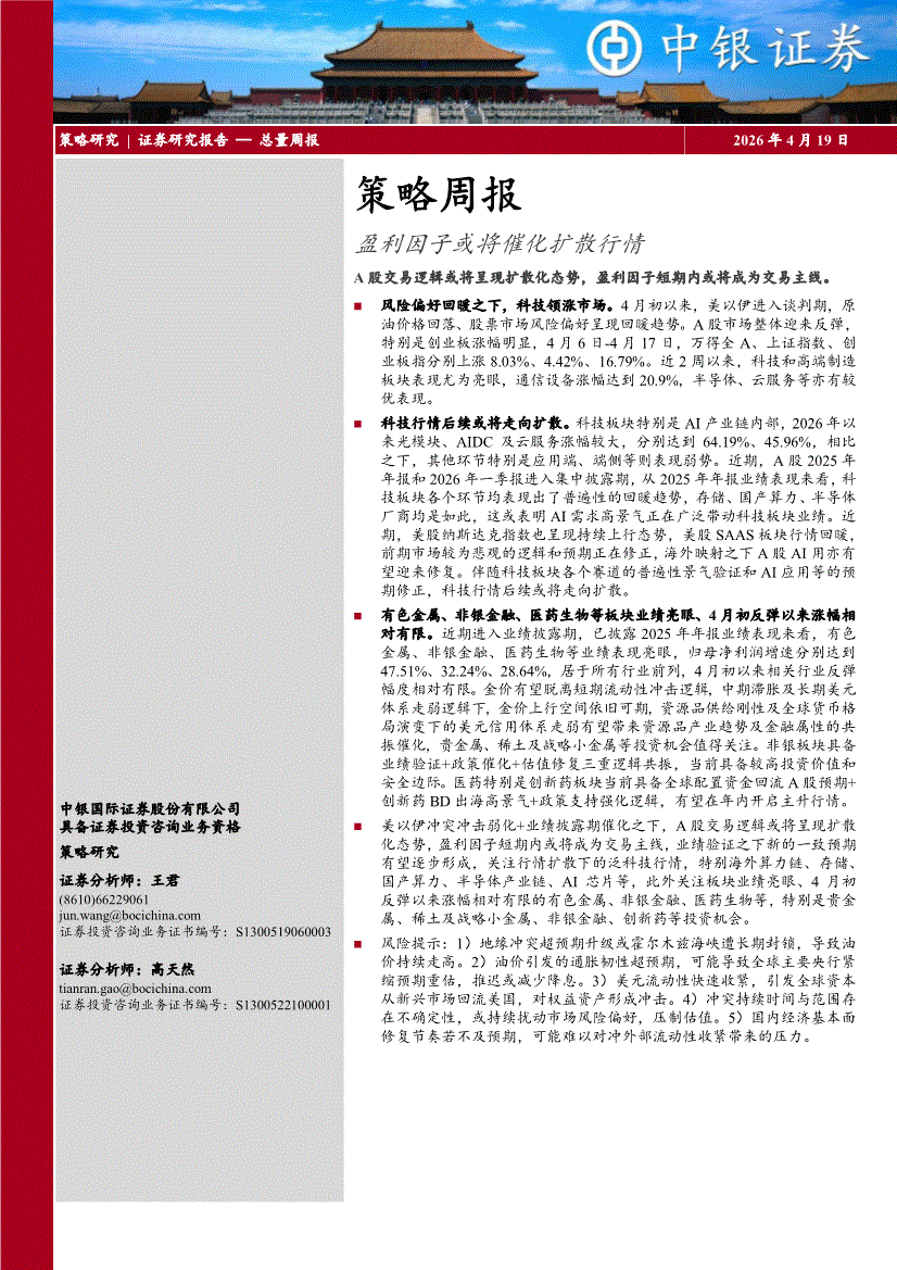 中银国际-策略周报:盈利因子或将催化扩散行情-260419