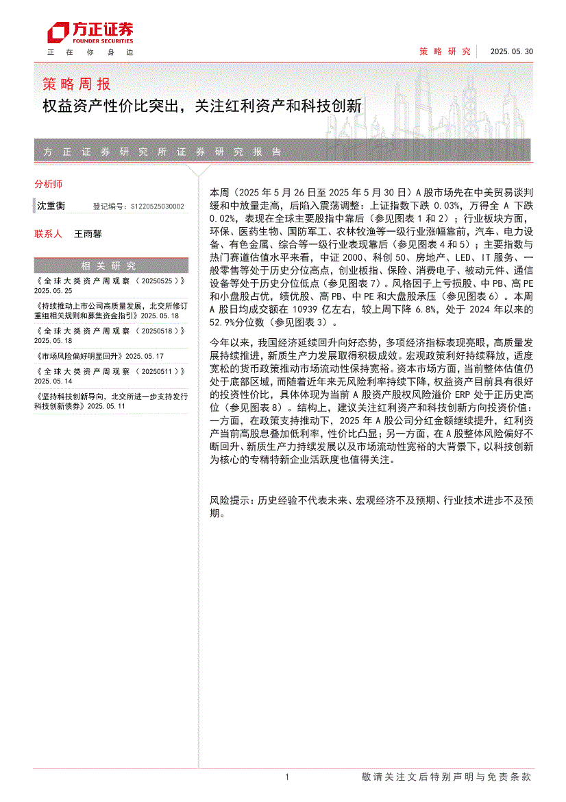 方正证券-策略周报:权益资产性价比突出,关注红利资产和科技创新-250530