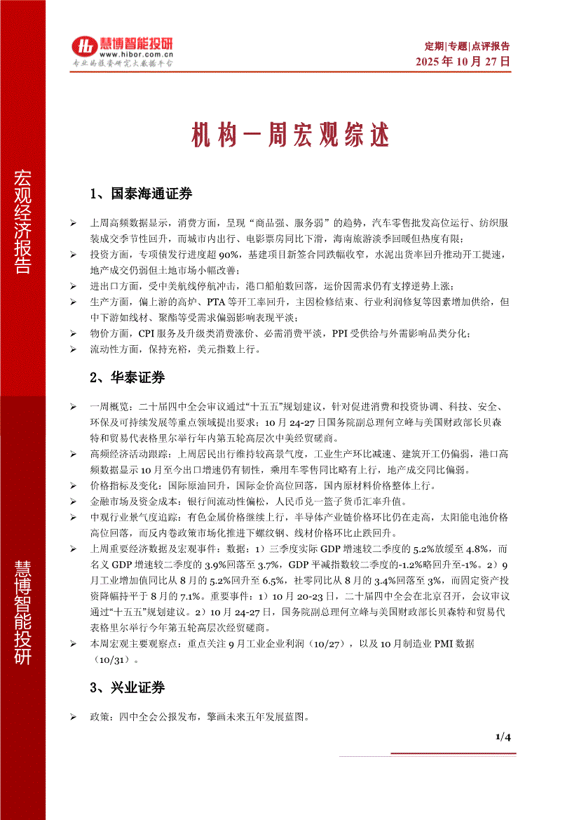 慧博智能投研-机构一周宏观综述-251027