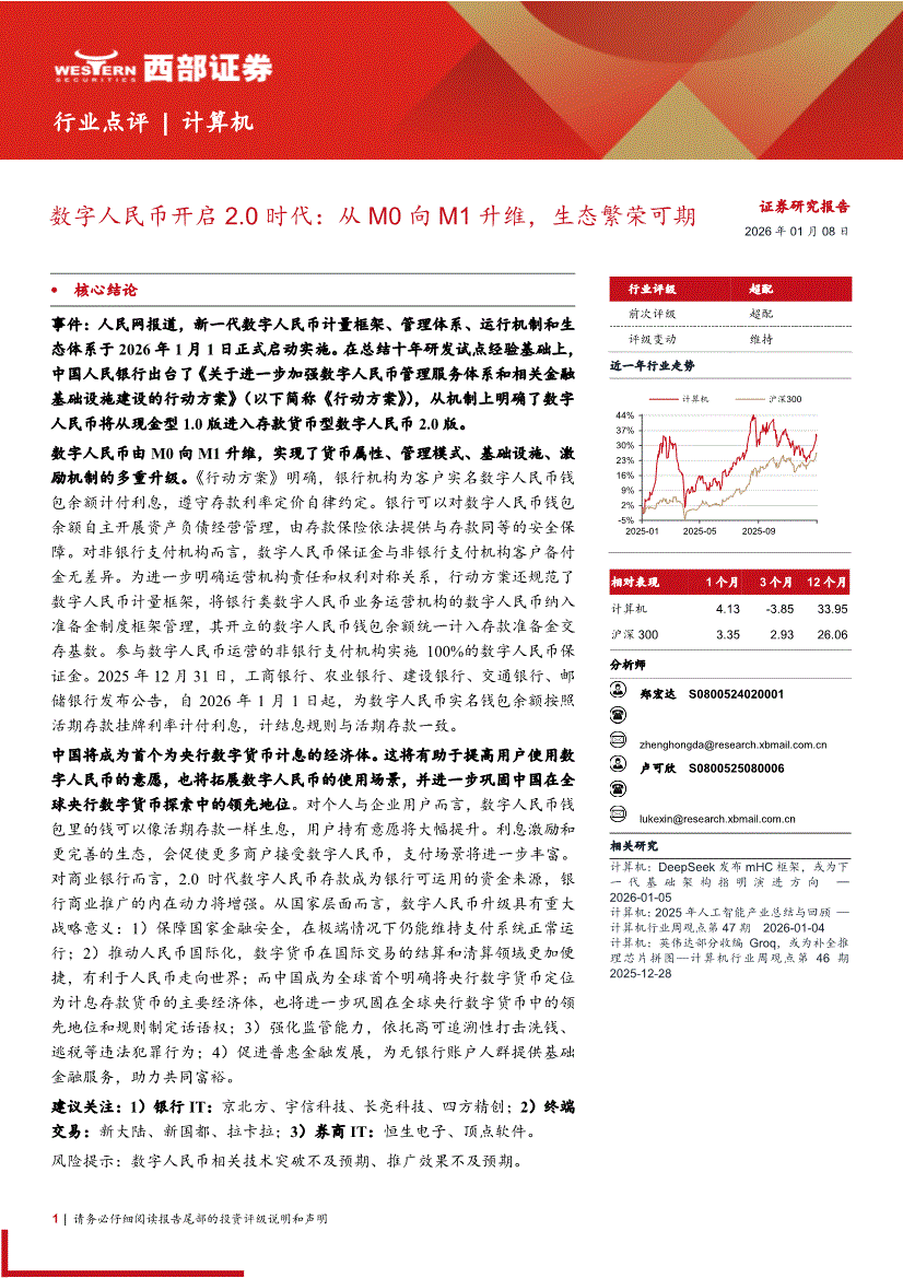 计算机行业:西部证券-计算机行业:数字人民币开启2.0时代,从M0向M1升维,生态繁荣可期-260108