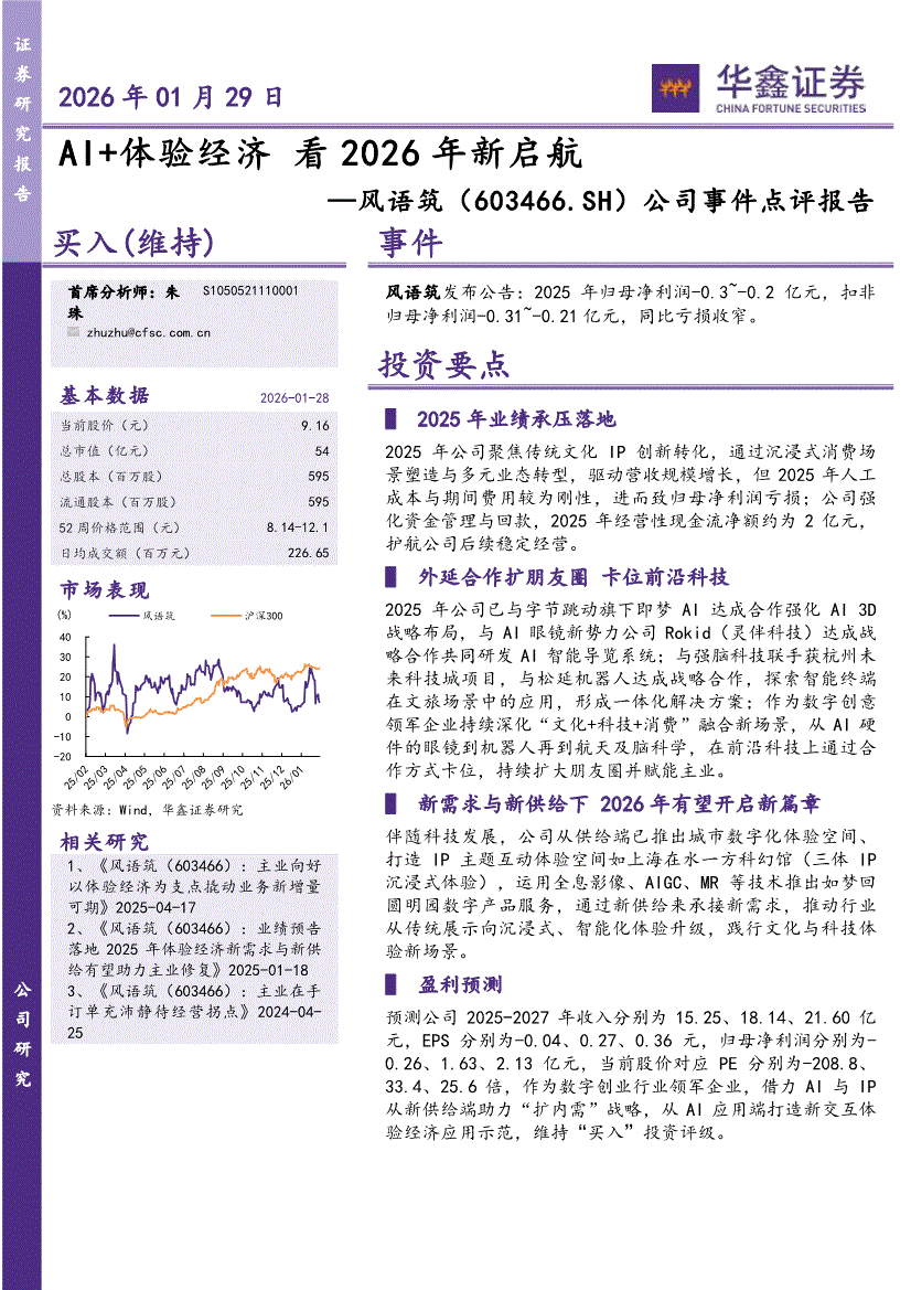 风语筑:华鑫证券-风语筑-603466-公司事件点评报告:AI+体验经济看2026年新启航-260129