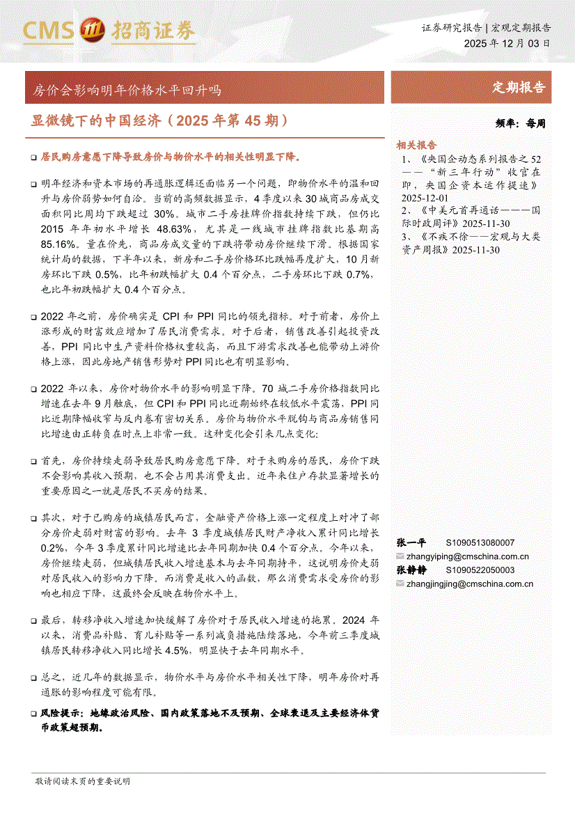 招商证券-显微镜下的中国经济(2025年第45期):房价会影响明年价格水平回升吗-251203
