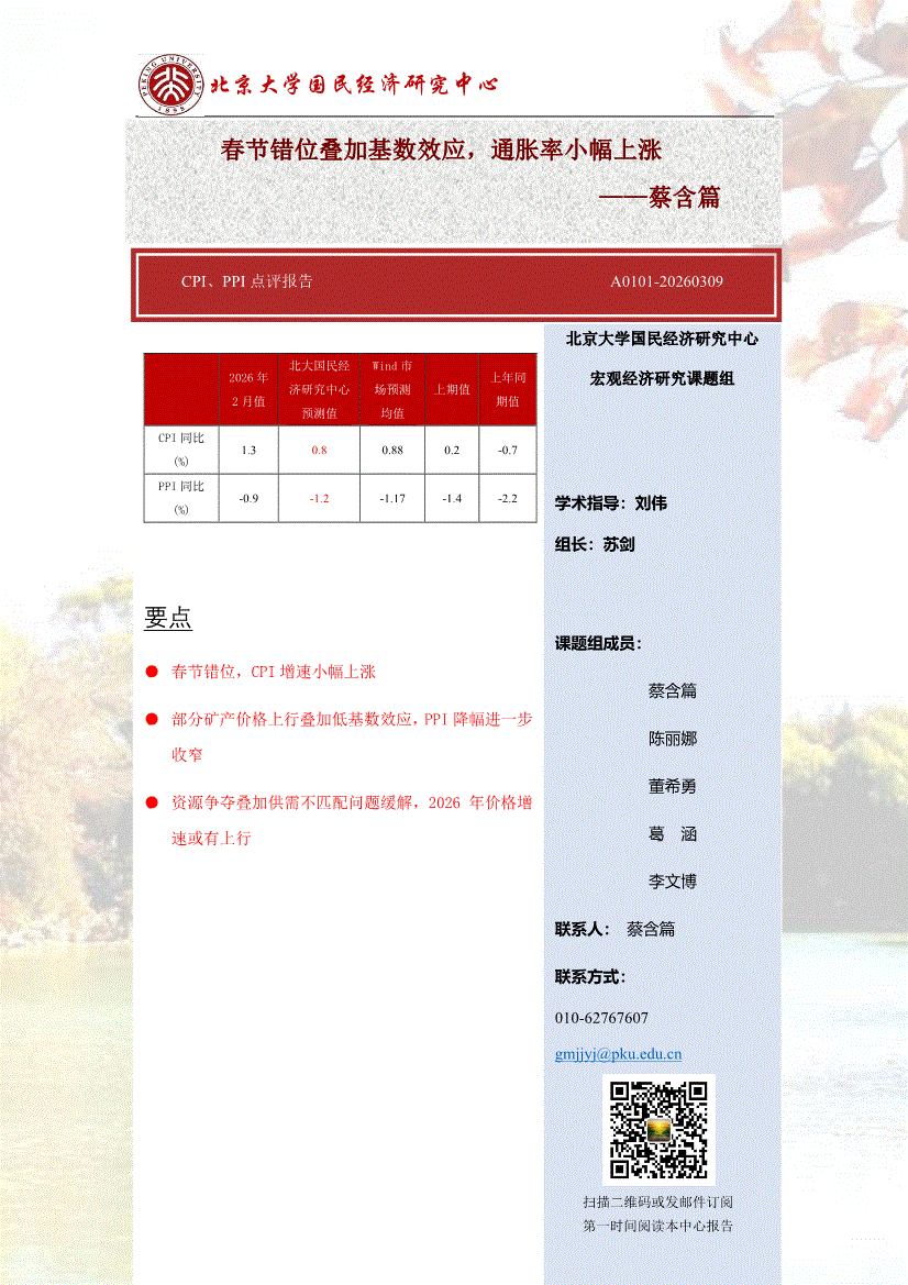 北京大学国民经济研究中心-CPI、PPI点评报告:春节错位叠加基数效应,通胀率小幅上涨-260309