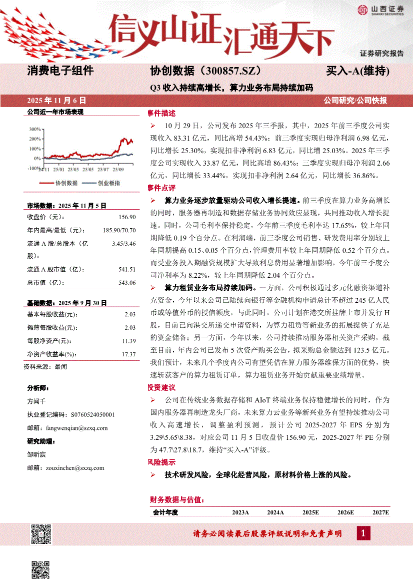 山西证券-协创数据-300857-Q3收入持续高增长,算力业务布局持续加码-251106