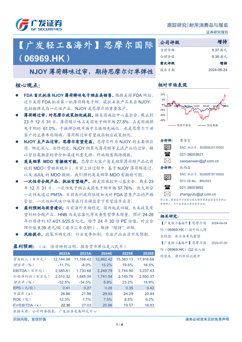 思摩尔国际:广发证券-思摩尔国际-6969.HK-NJOY薄荷醇味过审,期待思摩尔订单弹性-240624