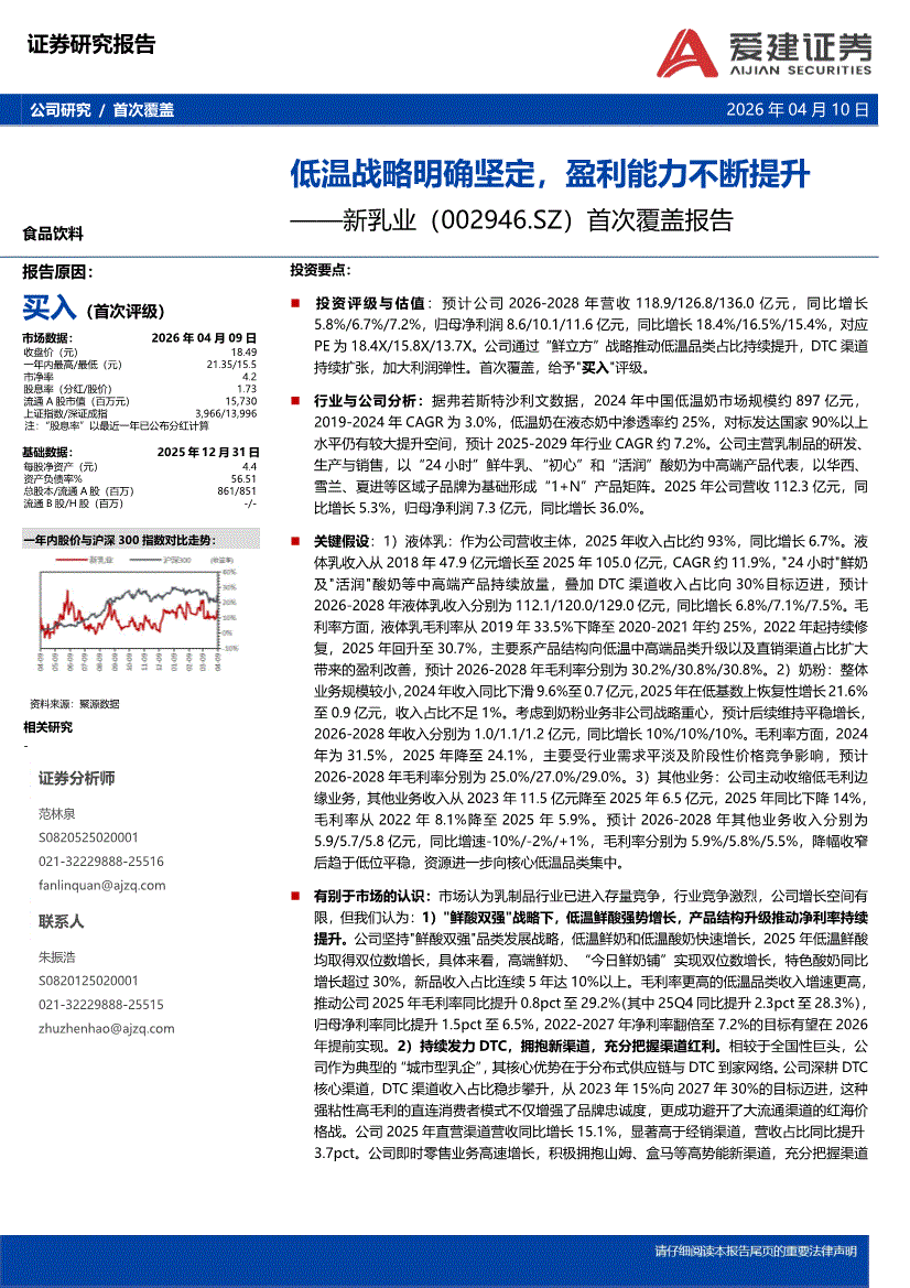 新乳业:爱建证券-新乳业-002946-首次覆盖报告:低温战略明确坚定,盈利能力不断提升-260410