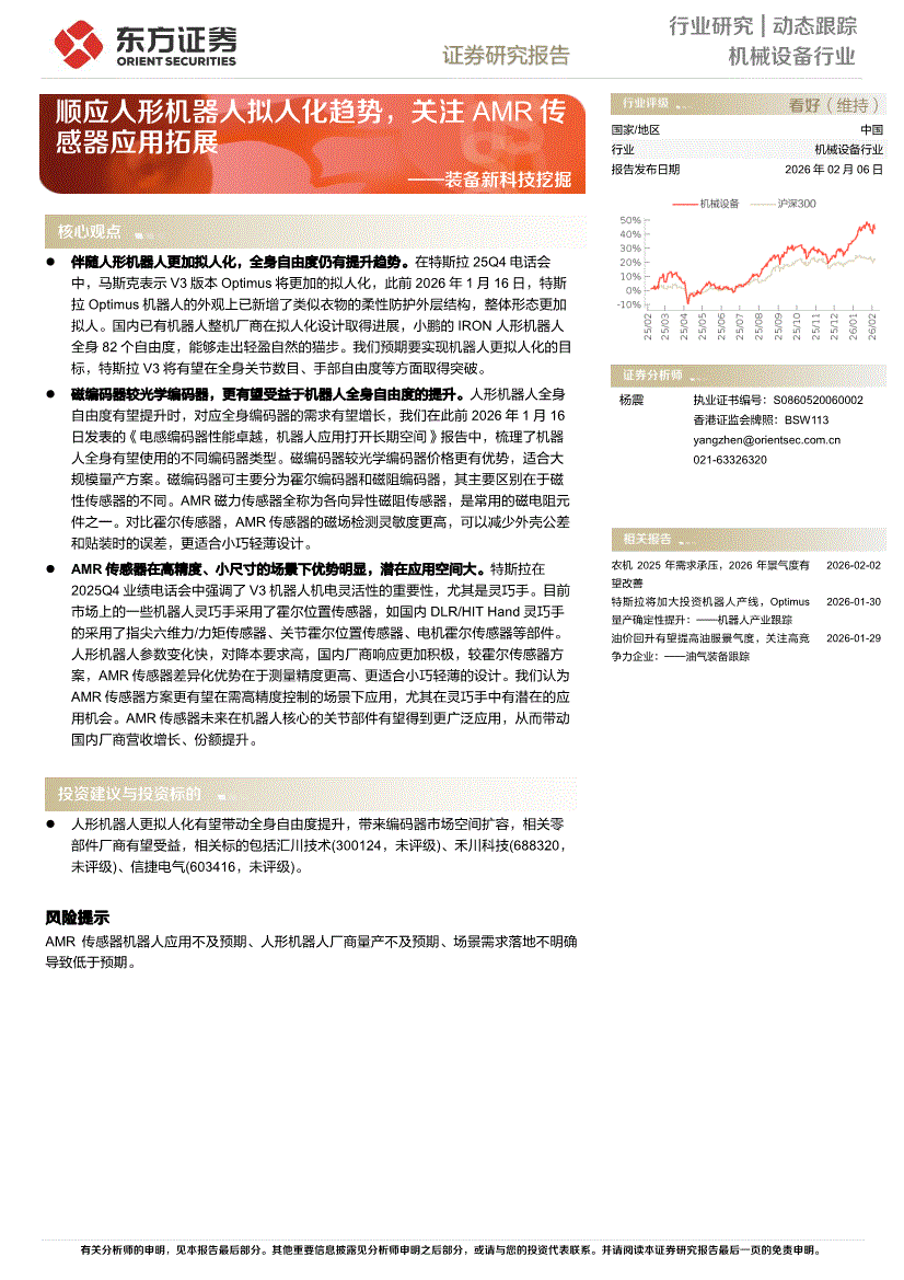 机械设备行业:东方证券-机械设备行业装备新科技挖掘:顺应人形机器人拟人化趋势,关注AMR传感器应用拓展-260206