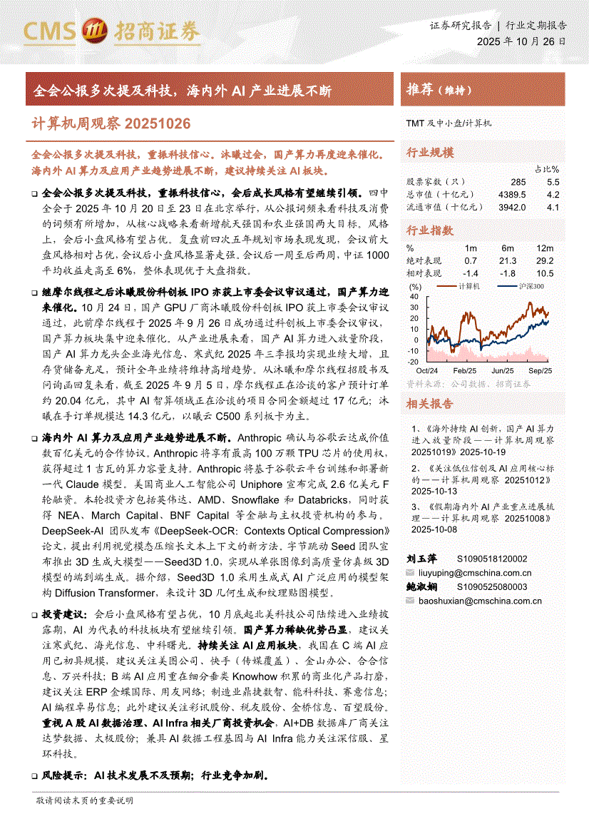 计算机行业:招商证券-计算机行业周观察:全会公报多次提及科技,海内外AI产业进展不断-251026