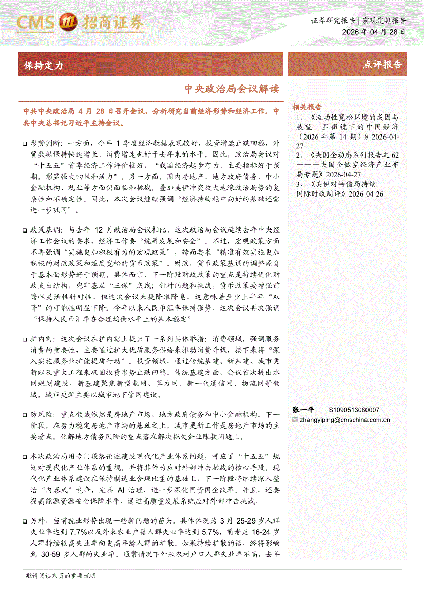 招商证券-中央政治局会议解读:保持定力-260428