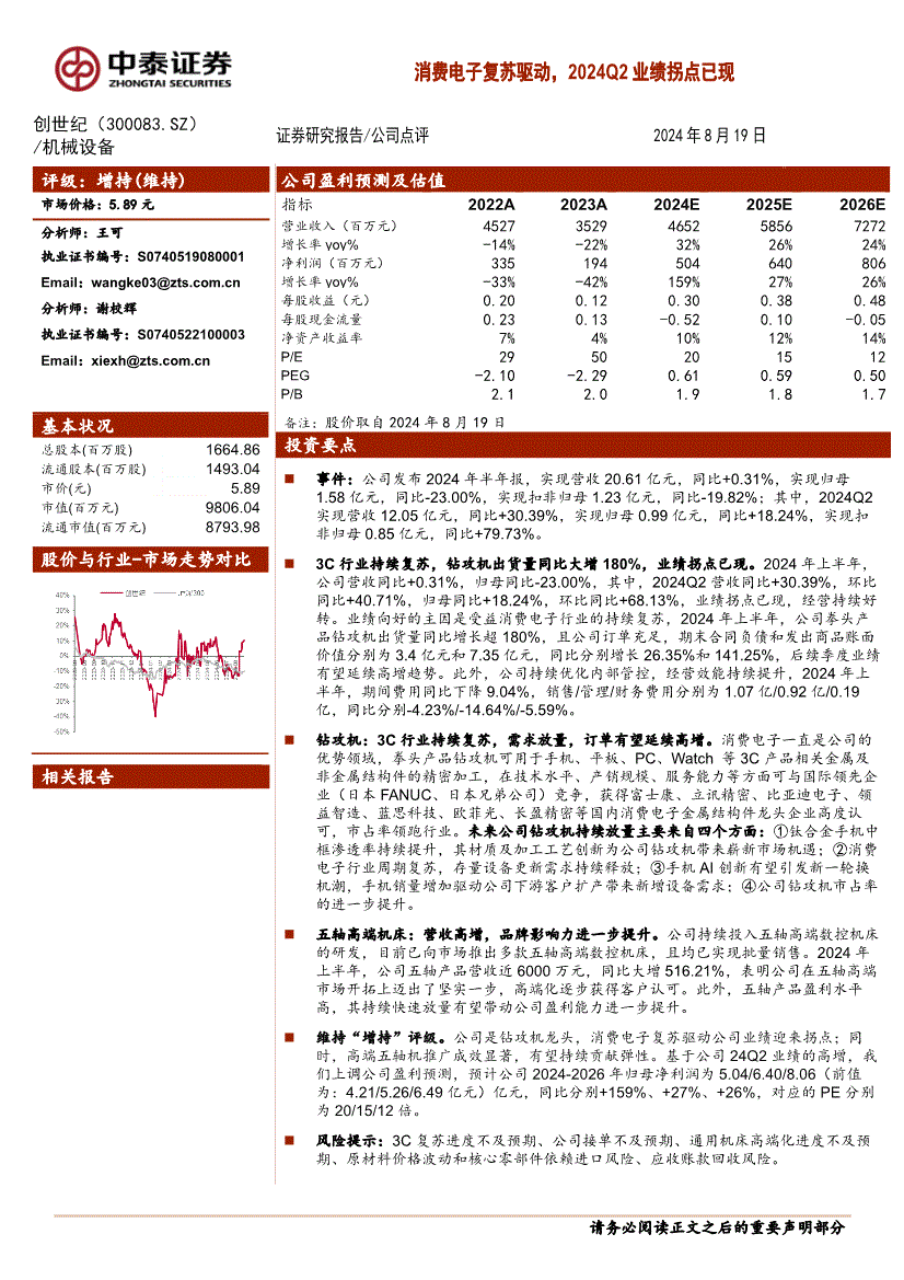 创世纪:中泰证券-创世纪-300083-消费电子复苏驱动,2024Q2业绩拐点已现-240819