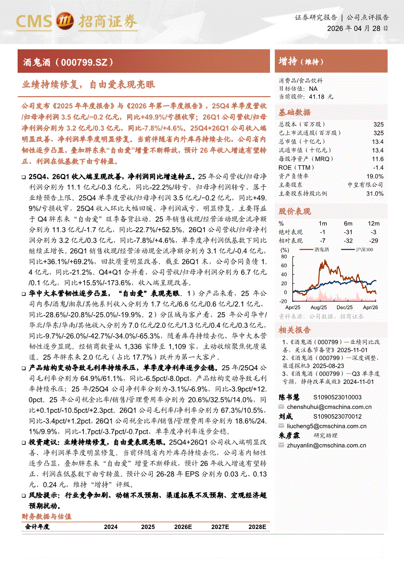酒鬼酒:招商证券-酒鬼酒-000799-业绩持续修复,自由爱表现亮眼-260428