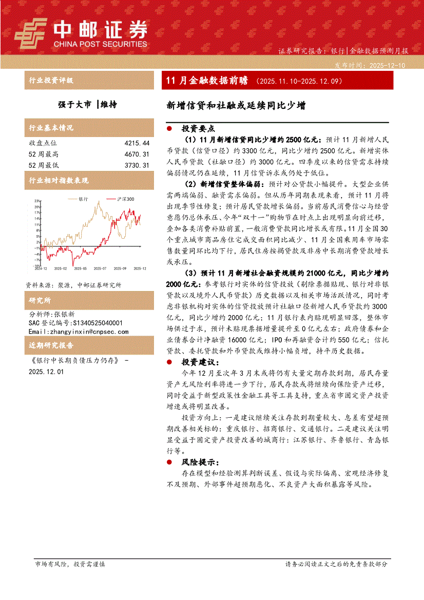 银行业:中邮证券-银行业11月金融数据前瞻:新增信贷和社融或延续同比少增-251210