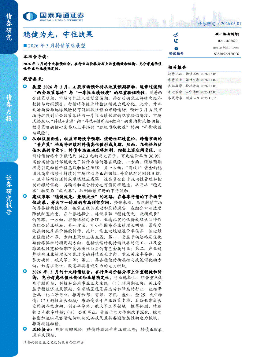 国泰海通证券-2026年3月转债策略展望:稳健为先,守住战果-260301