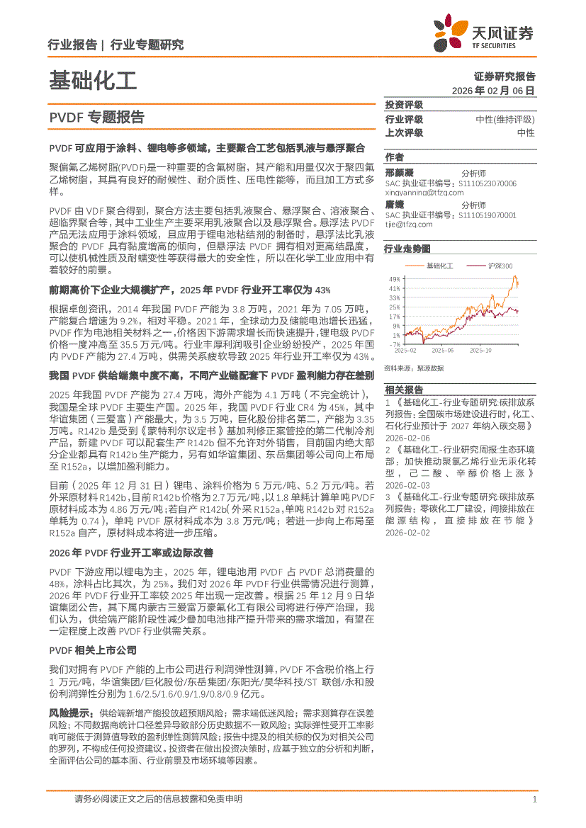 基础化工行业:天风证券-基础化工行业:PVDF专题报告-260206