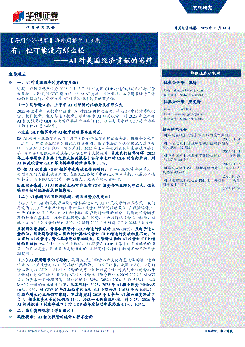 华创证券-【每周经济观察】海外周报第113期:有,但可能没有那么强——AI对美国经济贡献的思辩-251110