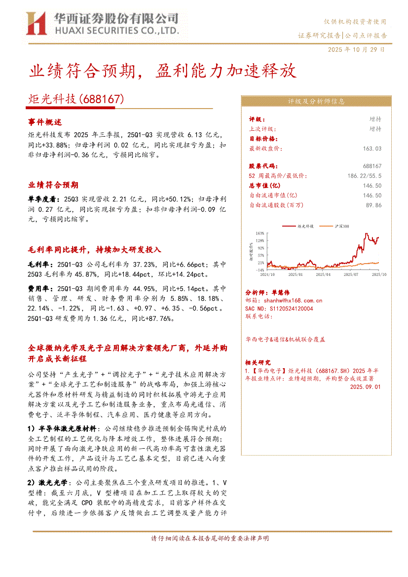 炬光科技:华西证券-炬光科技-688167-业绩符合预期,盈利能力加速释放-251029
