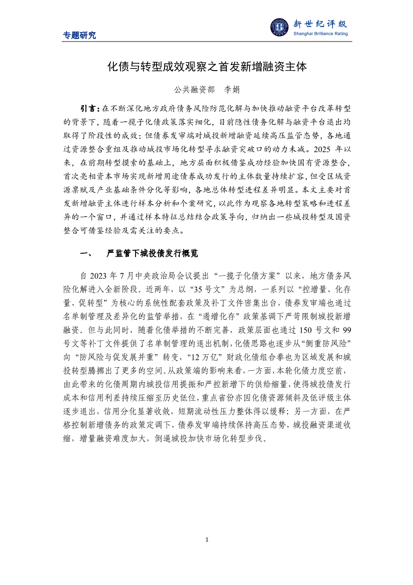 新世纪评级-化债与转型成效观察之首发新增融资主体-251206
