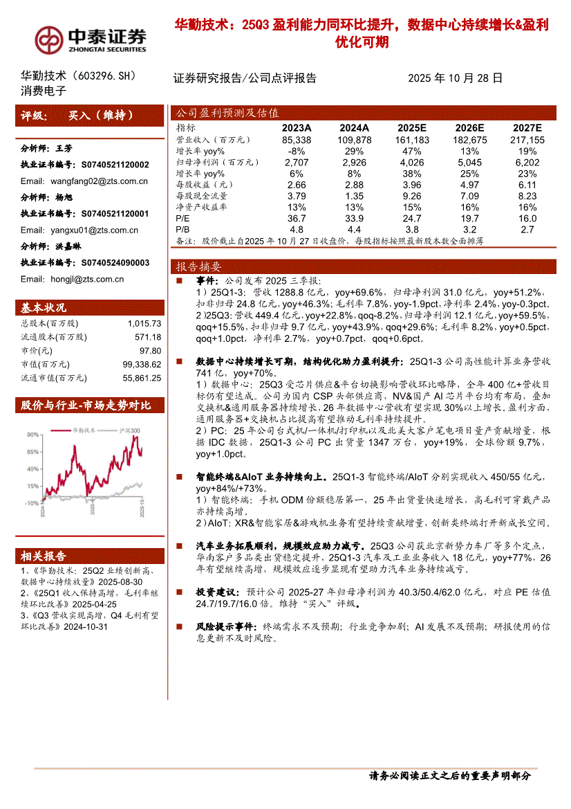 华勤技术:中泰证券-华勤技术-603296-25Q3盈利能力同环比提升,数据中心持续增长&盈利优化可期-251028