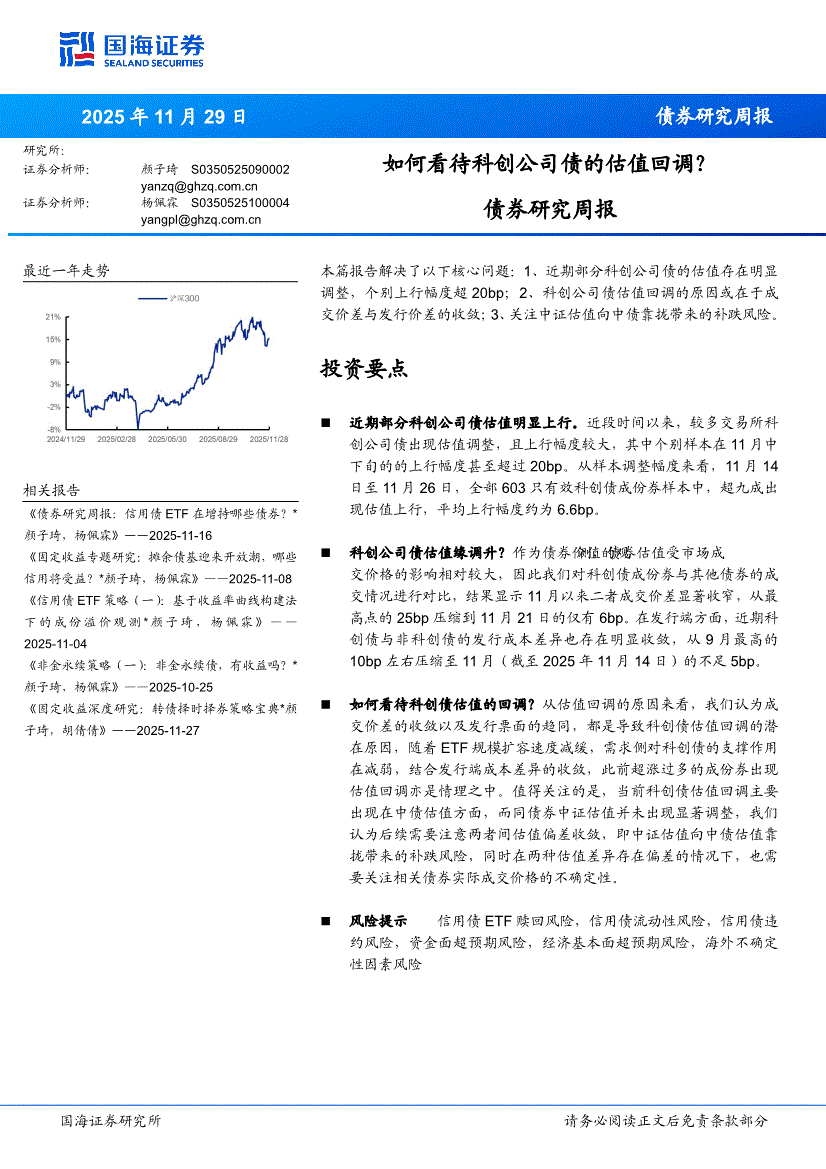 国海证券-债券研究周报:如何看待科创公司债的估值回调?-251129