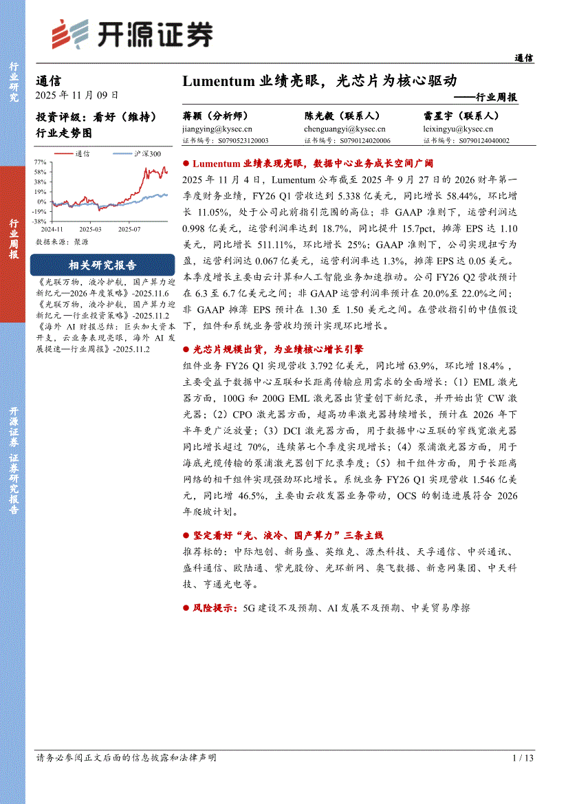 通信行业:开源证券-通信行业周报:Lumentum业绩亮眼,光芯片为核心驱动-251109