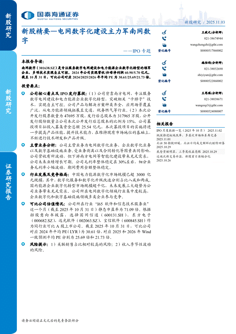 国泰海通证券-IPO专题:新股精要—电网数字化建设主力军南网数字-251103