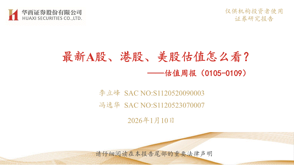 华西证券-估值周报:最新A股、港股、美股估值怎么看?-260110