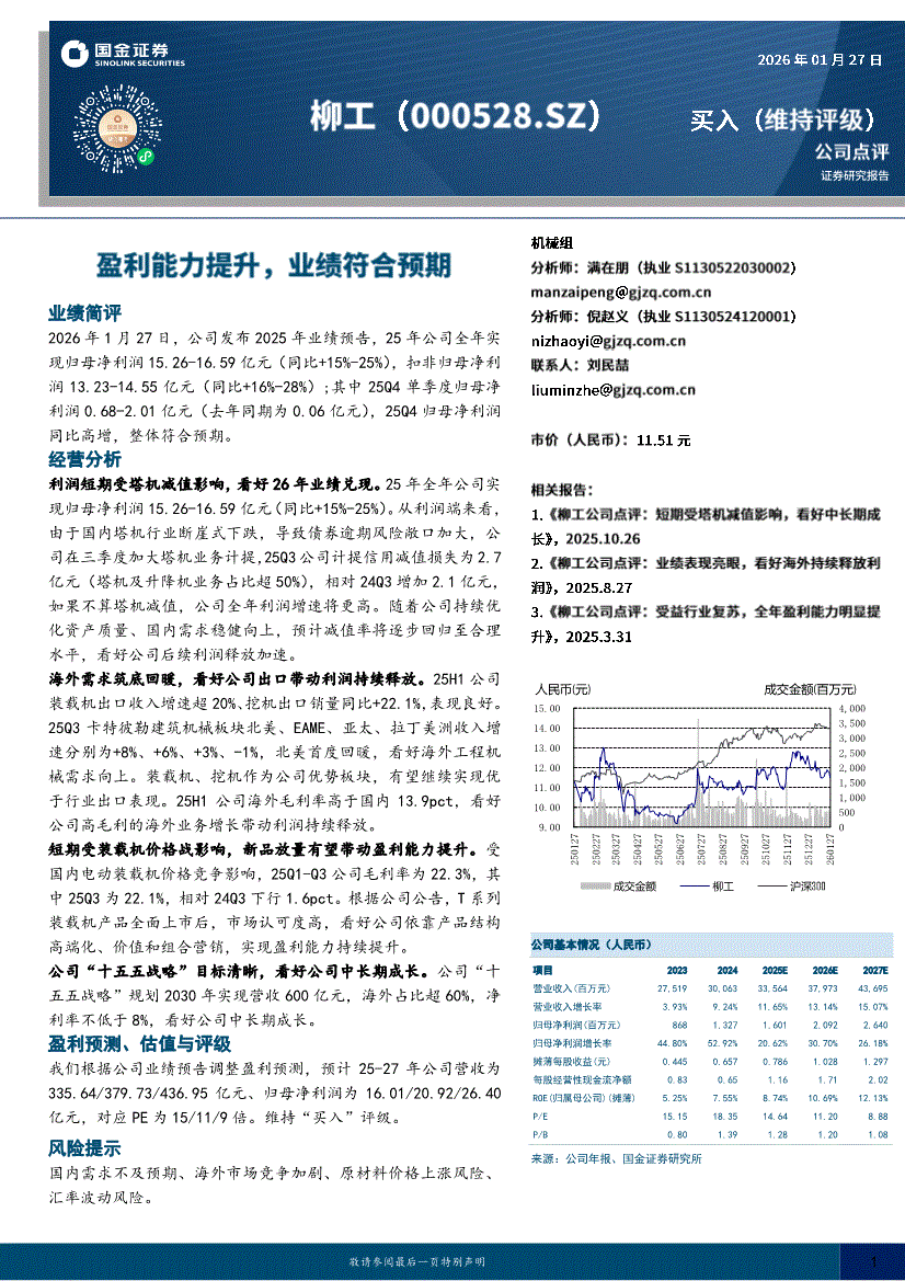 柳工:国金证券-柳工-000528-盈利能力提升,业绩符合预期-260127