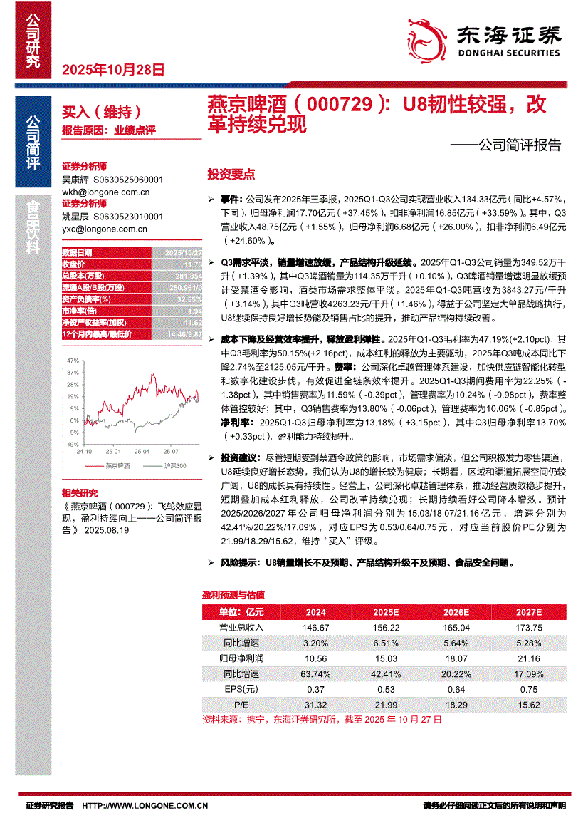 燕京啤酒:东海证券-燕京啤酒-000729-公司简评报告:U8韧性较强,改革持续兑现-251028