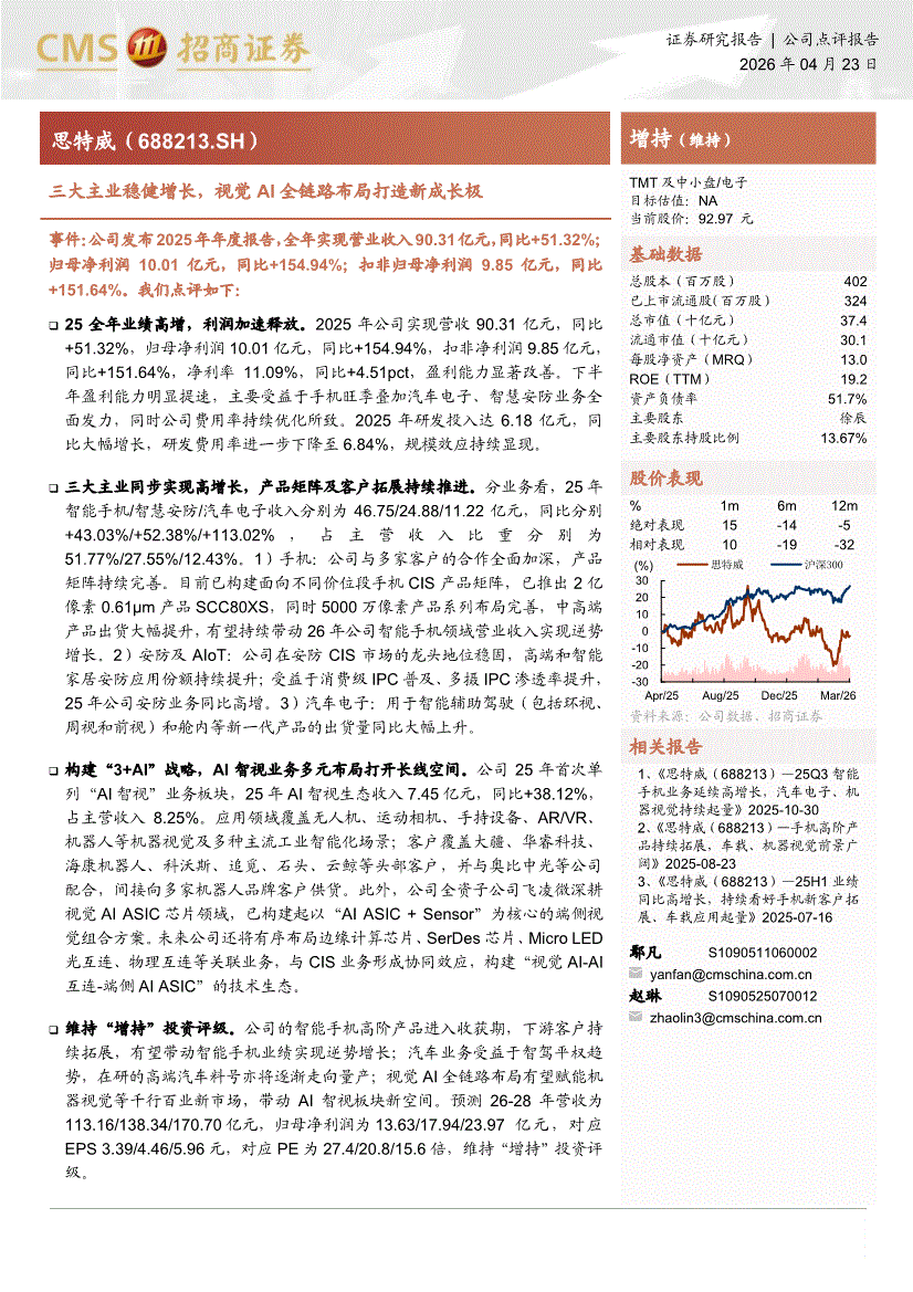 思特威:招商证券-思特威-688213-三大主业稳健增长,视觉AI全链路布局打造新成长极-260423