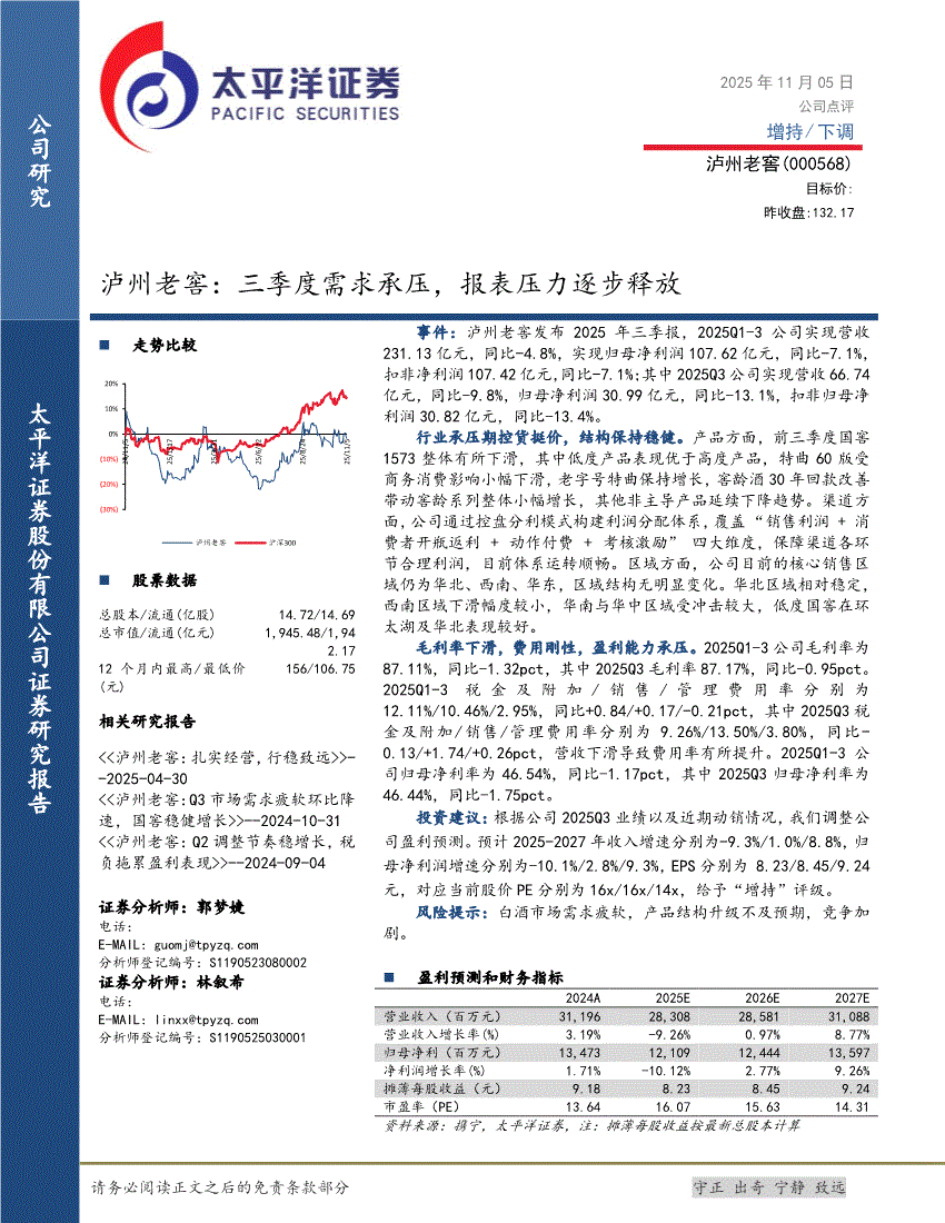 泸州老窖:太平洋证券-泸州老窖-000568-三季度需求承压,报表压力逐步释放-251105