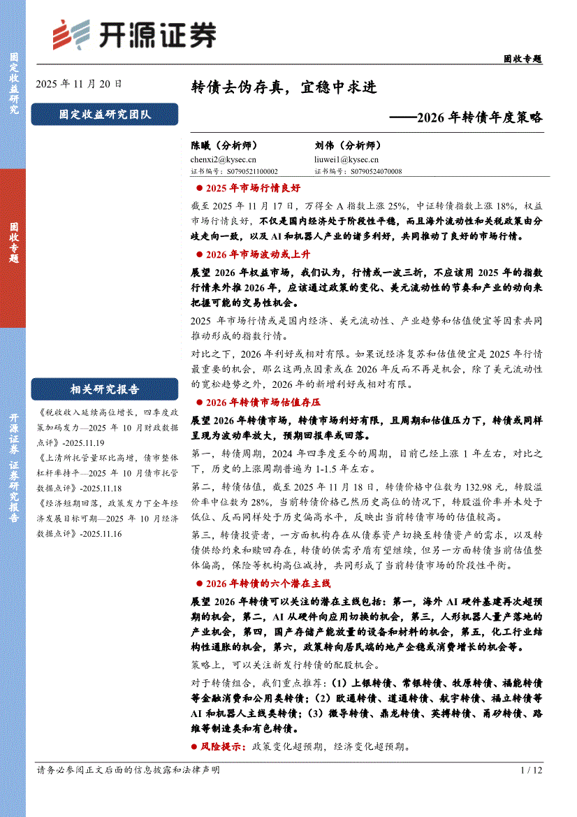 开源证券-2026年转债年度策略:转债去伪存真,宜稳中求进-251120